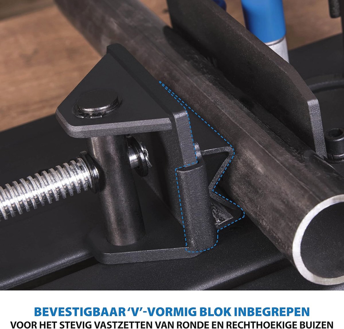 - Gebruiksvriendelijk ontwerp: Voor het veilig vastklemmen van onderdelen wordt de zaag geleverd met handige V-klemmen, zodat je zonder stress en onzekerheid aan de slag kunt.