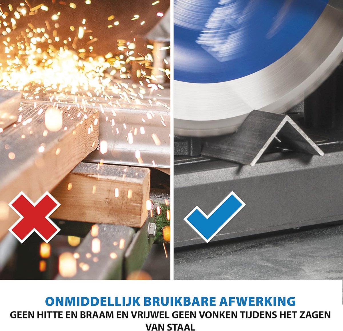 Ontdek de kracht en precisie van deze professionele afkortzaag voor metaal, een onmisbare tool voor elke vakman of doe-het-zelver die streeft naar perfectie. Met een imponerend 355 mm TCT-zaagblad levert deze zaag een haarscherpe en nette snede, zonder hitte, braam of vonken. Ideaal voor gebruik op locatie dankzij de directe afwerking, waardoor je snel en zonder extra bewerkingen aan je project kunt werken.